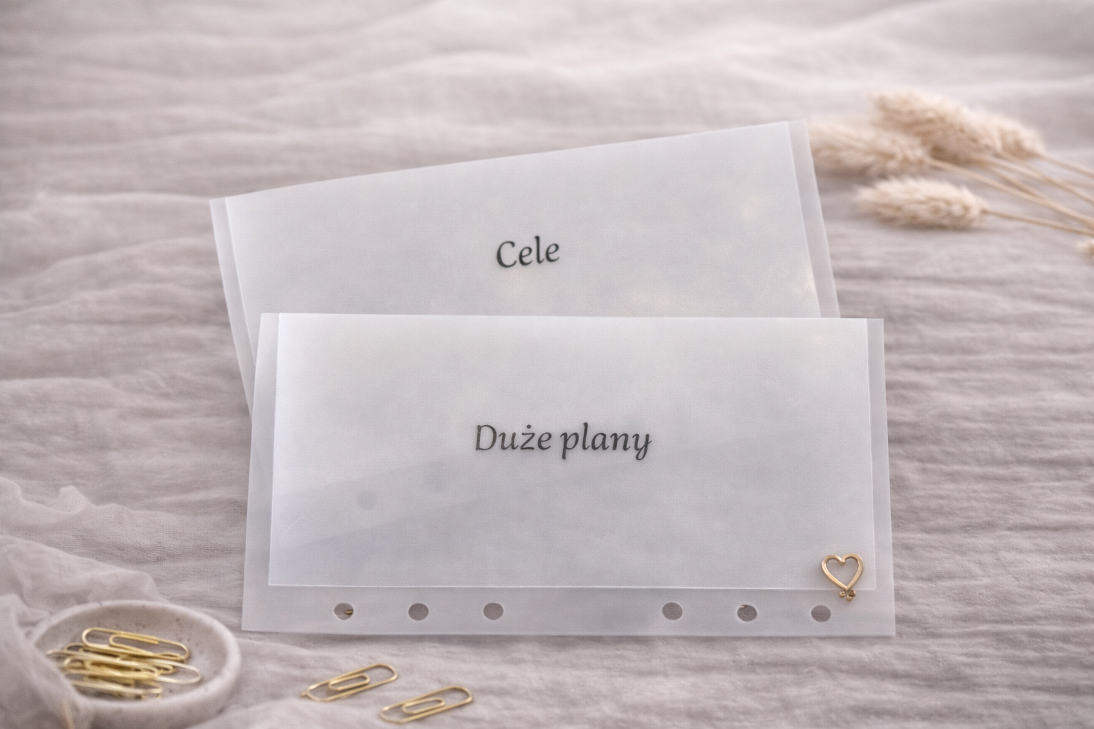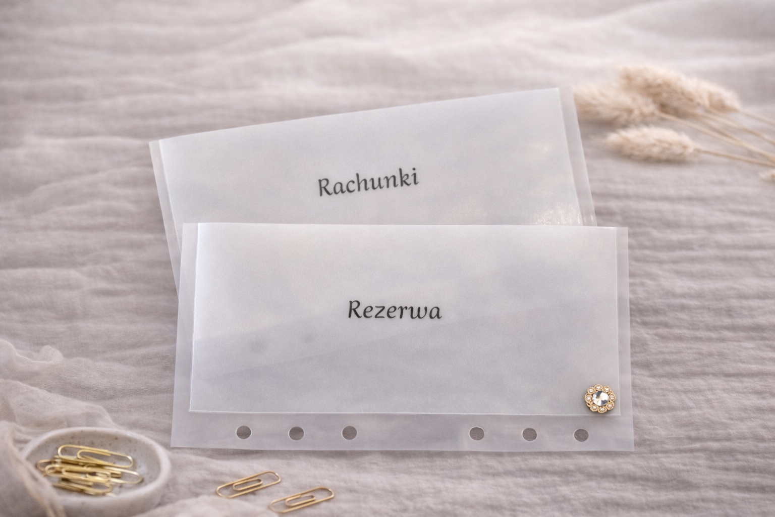To 6 minimalistycznych kopert do segregatora A6, którym możesz nadać własne nazwy — dopasowane do Twoich celów, priorytetów i stylu życia.